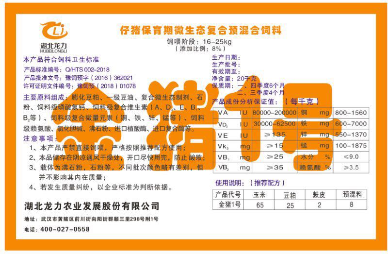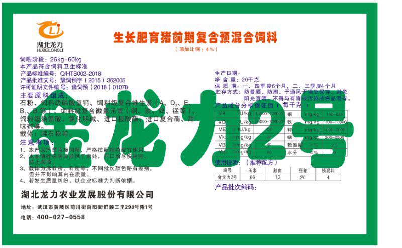 湖北龍力農業發(fā)展股份有限公司坐落于武漢市黃陂區前川街向陽街群順三里298號附1號。公司成立于2014年6月,公司自成立以來把“創(chuàng)全球最大養(yǎng)豬綜合服務”為企業愿景。致力于打造教保料品牌”作為公司發(fā)展的明確目標。公司一直致力于豬營養(yǎng)的研究和開發(fā),積極與國內外高校和科研機構合作,推廣養(yǎng)豬技術、動物營養(yǎng)新概念,向世界農牧企業學習與合作。公司采用國內先進的生產工藝,選擇高精度電子配料秤,高均勻度、無殘留混合機等先進設備....